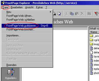 |Datei| und anschließend auf |FrontPage-Web publizieren|.