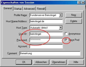 Selektieren Sie anschließend das Feld "Save Pwd", um das Passwort abzuspeichern.