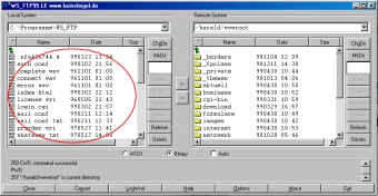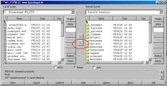 Nachdem sich das FTP-Programm am Server angemeldet hat, erscheint im linken Fenster des Programmes die Verzeichnisstruktur Ihres lokalen Rechners, auf der rechten Seite die Ihres Servers.
