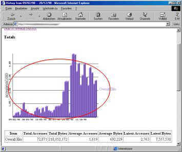 Dieses zeigt Ihnen dann beispielsweise, daß etwa 1/6 Ihrer Besucher T-Online benutzen, aber nicht, welche Person Ihr Angebot besucht hat.